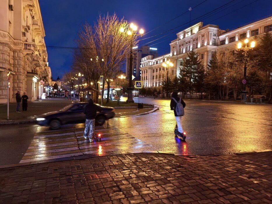 Непогода еще не отпустила Хабаровск, и солнце периодически скрывается за пеленой туч. Вечером субботы дождь ненадолго закончился, и улицы сразу наполнились отдыхающими после рабочей недели горожанами. В этот момент Хабаровск становится особенно уютным и притягательным, словно приглашая сделать паузу и насладиться моментом единения с природой в городской суете. Атмосферные фото под светом фонарей – в нашем фоторепортаже.