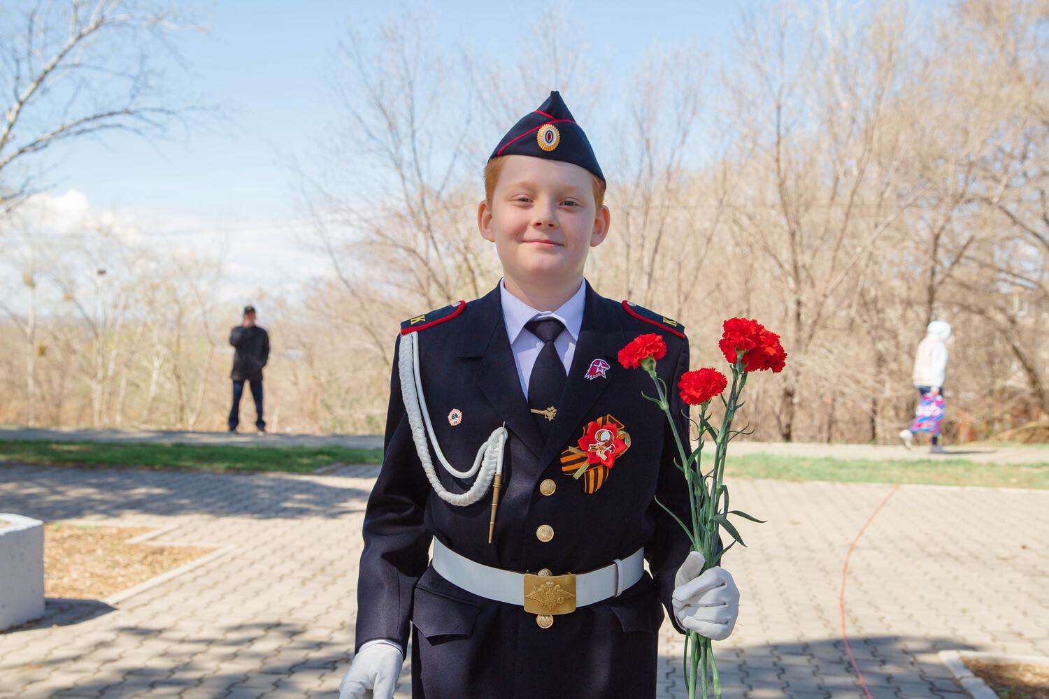 После автоколонна из десяти автомобилей проехала по памятным местам Краснофлотского района. Под развевающимися знаменами Победы машины последовали к монументу, хранящему имена рабочих и служащих завода имени С. М. Кирова, павших в тяжелые сороковые годы. Там, у гранитного подножия, легли багряные гвоздики и траурные венки - безмолвная дань благодарности за мирное небо над головой. Далее автомобили с флагами проехали и по другим памятным местам Краснофлотского района.