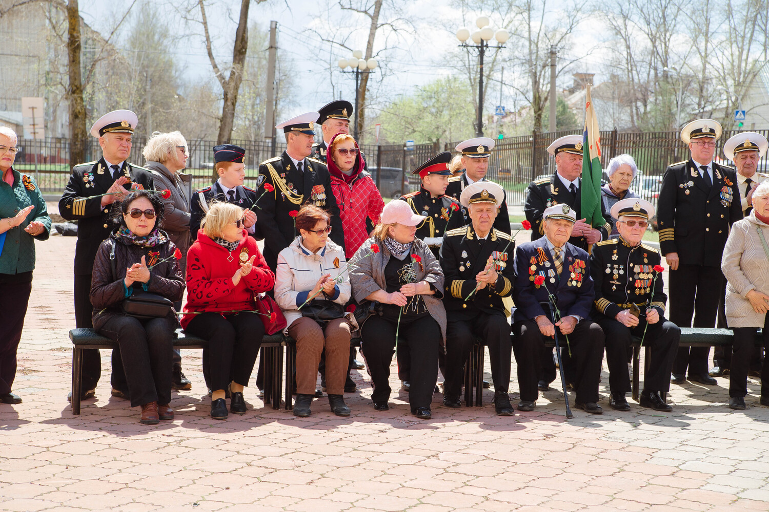 После автоколонна из десяти автомобилей проехала по памятным местам Краснофлотского района. Под развевающимися знаменами Победы машины последовали к монументу, хранящему имена рабочих и служащих завода имени С. М. Кирова, павших в тяжелые сороковые годы. Там, у гранитного подножия, легли багряные гвоздики и траурные венки - безмолвная дань благодарности за мирное небо над головой. Далее автомобили с флагами проехали и по другим памятным местам Краснофлотского района.