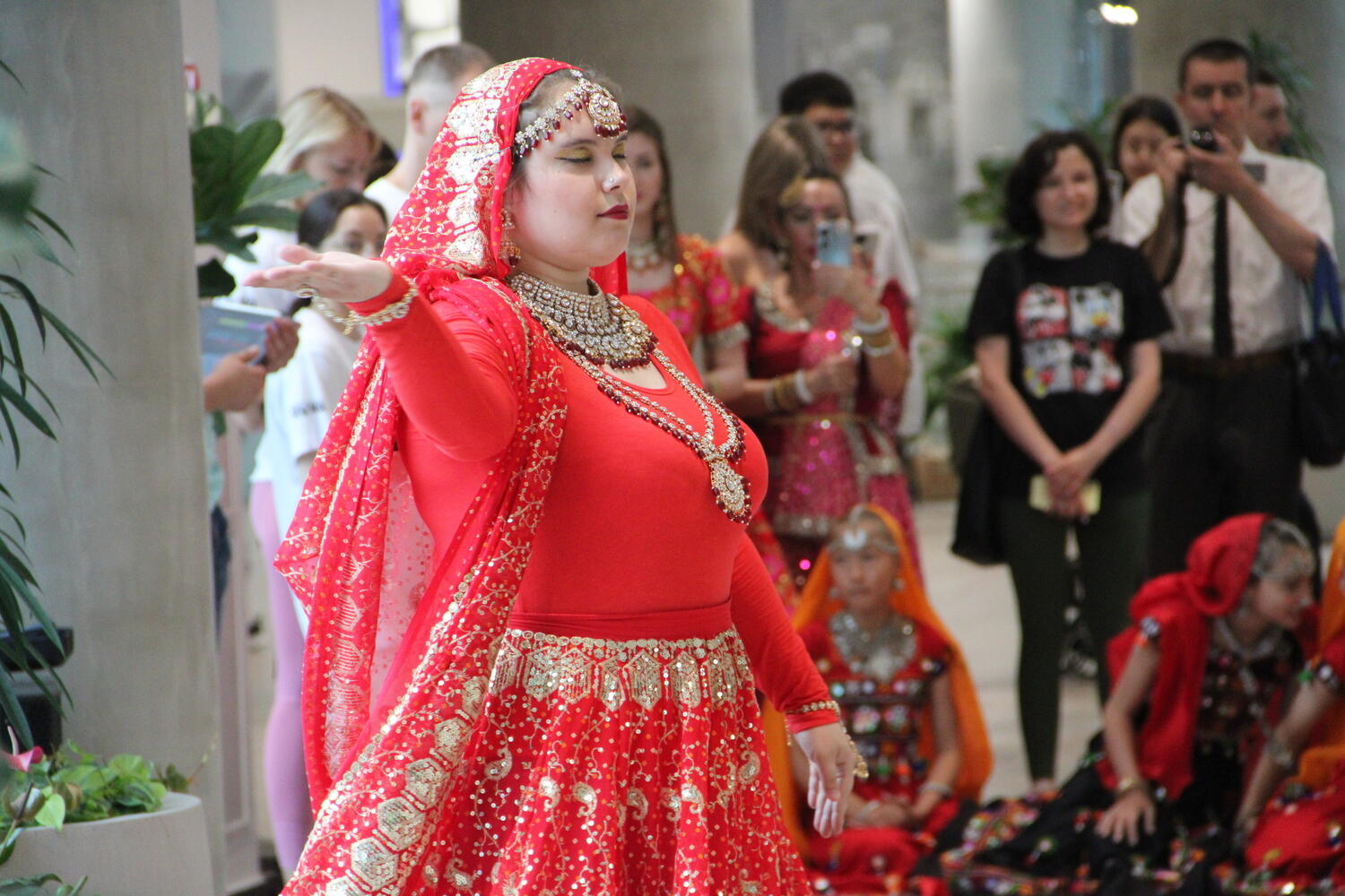Более 400 человек создали «море белого» на третьем этаже одного из торговых центров. Под руководством инструкторов хабаровчане синхронно выполняли асаны, дышали в такт и медитировали. Гвоздь программы — буквально — площадка гвоздестояния: от студентов до пенсионеров смело пробовали силы. В углу — группа новичков впервые открывает для себя позу «дерева», а бабушка в белом одеянии улыбается, балансируя на одной ноге. На втором плане — дети повторяют движения за индийскими танцовщицами. Энергия тишины среди торговых витрин — вот главное чудо дня!