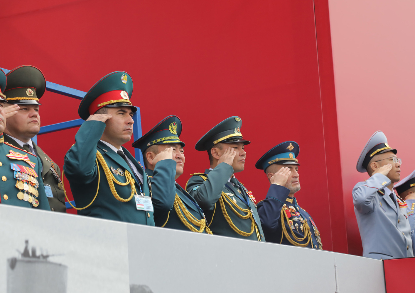 В качестве почетных гостей на трибуне присутствовали делегация государств-членов ОДКБ и делегации вооруженных сил Монголии, Узбекистана, Китая и Корейской Народно-Демократической Республики.