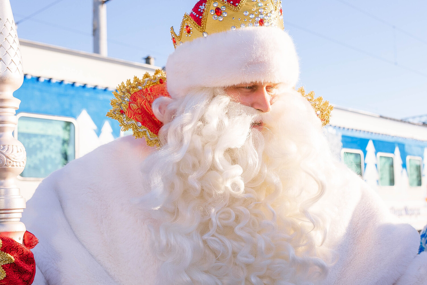Солнечное, но очень холодное утро началось у многих юных хабаровчан не с садика и не со школы – дети и их родители встречали поезд Деда Мороза-2025. Прибыл сказочный состав в 10 утра. И пока Дед Мороз и Снегурочка не вышли к детворе - их развлекали зайчата, Гном и Снеговик.