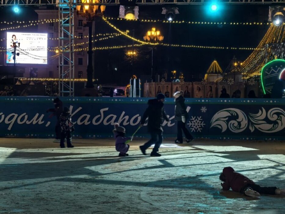 Новогодняя площадь Ленина в Хабаровске преобразилась к праздникам. Центром притяжения стал большой каток, где под яркими гирляндами и светом огромной елки весело скользят взрослые и дети. Веселый гул, теплый запах выпечки из павильончиков и сияющие огни создают атмосферу настоящего зимнего чуда. Это идеальное место, чтобы ощутить волшебство наступающего года.