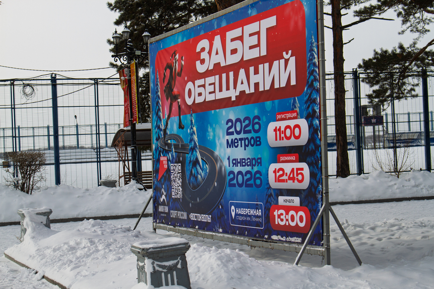 Забег обещаний обычно проводится в первый день нового года, и дистанция, как правило, равна значению в календаре. На этот раз, пока большая часть горожан в Хабаровске завтракали вчерашним оливье, спортсмены вышли на зимний морозец, чтобы пробежать 2026 метров — от Универсального краевого спортивного комплекса до памятника маршалу Василевскому и обратно.