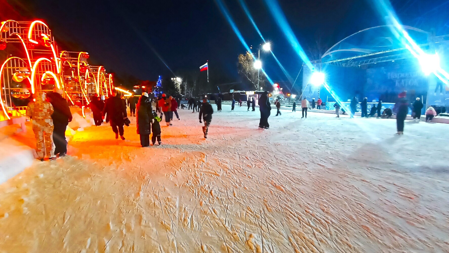 Новогодние каникулы-2026: как хабаровчане развлекаются на открытом катке на набережной Амура
