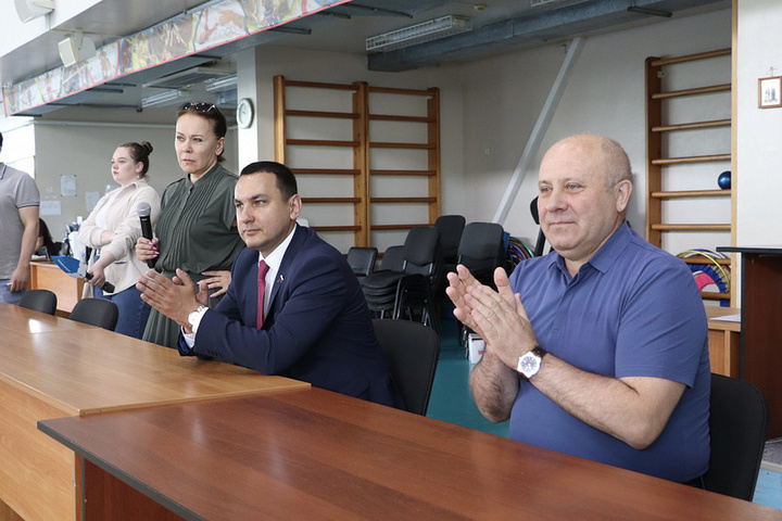 7 июня мэр Сергей Кравчук посетил с рабочим визитом спортивный комплекс «Олимпия». Градоначальник пообщался с воспитанниками и тренерами, осмотрел помещения и инвентарь, с которым занимаются дети.