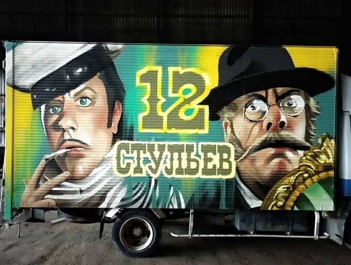 - Я начинал рисовать в свое удовольствие, совершенствовался в этом творчестве, улучшал качество, масштабы работ, и вот результат. Заказы сами меня нашли. Был у меня рисунок на грузовике - это коммерческий заказ для мебельной компании. Тогда я изобразил актеров из кинофильма «12 стульев» как образ на кузове. Заказчику понравилось.