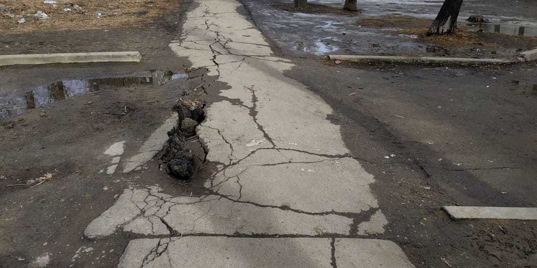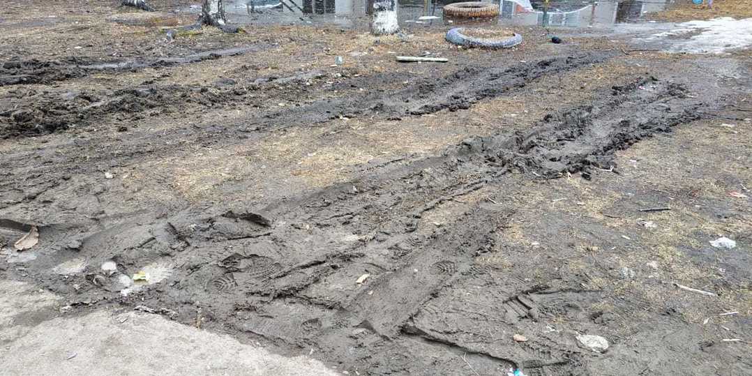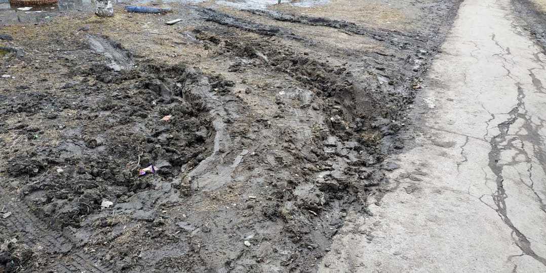 Пройти спокойно не удается, потому что каждый раз после дождя или по весне, когда тает снег, асфальт будто утекает вместе с водой, а придомовые территории превращаются в болото.