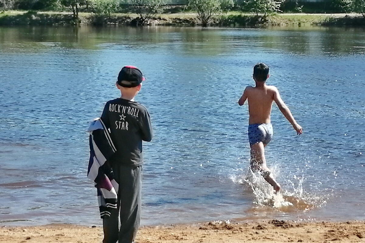 - Андрюха, вода возле берега теплая. Давай купаться, а то жара такая! - прокричал один из юных купальщиков.