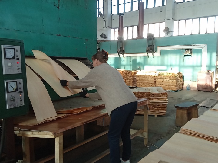 Михаил Михайлович проводит экскурсию по территории. Здесь в цехах царят дисциплина и сосредоточенность. Здесь производят натуральный шпон, разнообразные пиломатериалы и самое главное – мебельный щит. Это основа из древесного массива, которая потом становится главным материалом при изготовлении надежной и экологически чистой мебели, которую, кстати, здесь тоже производят самостоятельно по индивидуальным заказам. Также в ассортименте предприятия двери и окна из различных пород древесины и многое другое, что очень востребовано на строительном рынке России и за ее пределами – в Казахстане, Китае и Японии. Производство построено на принципе безотходности – все, что не пошло на изделия, становится дровами, из стружки формируют брикеты для растопки.