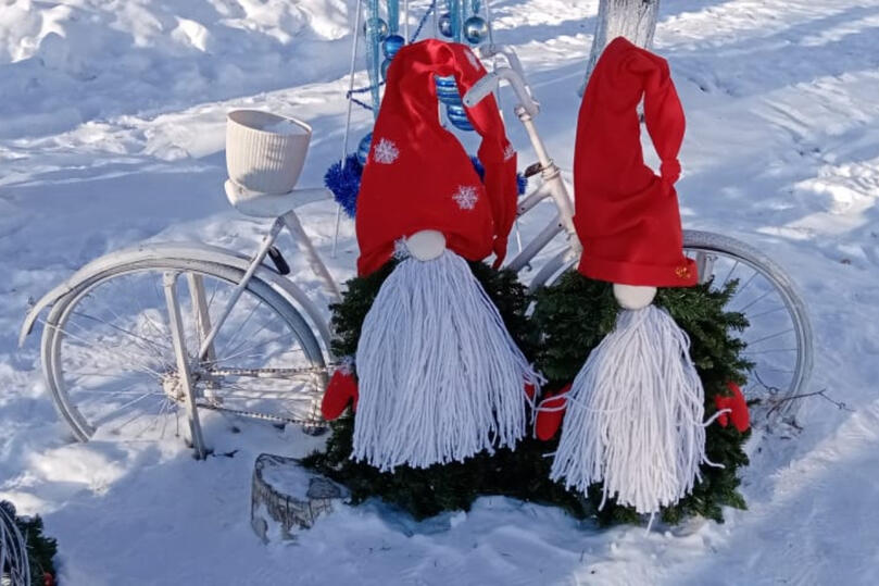 Самый живописный на всем пути - это двор детского центра «Поиск». Здесь и Дед Мороз, и Снегурочка, и старые-добрые волк с зайцем из «Ну, погоди!». Привлекают внимание ледяные сферы, блестящие в снегу как драгоценные камни. Кстати, в этом же районе нашелся первый украшенный балкон в многоквартирнике.