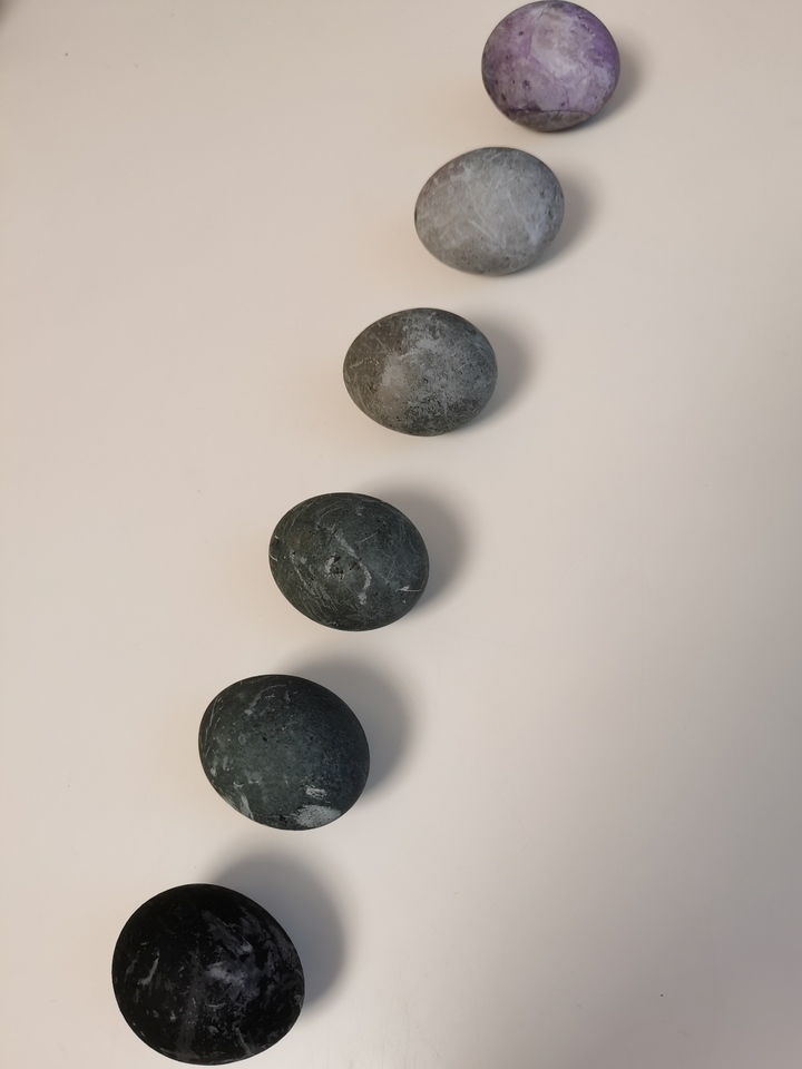 7. Следующие яйца достаем через два часа после варки. Их цвет будет уже темно-сине-серым.