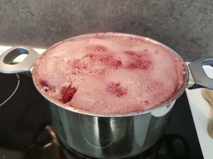 3. Советуем не отходить далеко от кастрюли - на практике оказалось, что каркаде очень сильно пенится. Пену убираем ложкой.