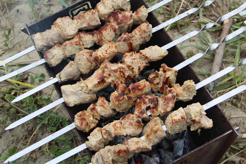 Из ягнятины (конечно, кто может себе позволить) лучше всего зажарить баранью ногу или лопатку. Только есть приготовленное нужно сразу - с пылу, с жару, баранина имеет одно неприятное свойство - быстро застывает. Любителям говядины специалисты рекомендуют выбрать вырезку или филейную часть. Но стоит помнить, что это мясо и в домашних-то условиях готовится дольше. А на природе… Я бы не рискнула.