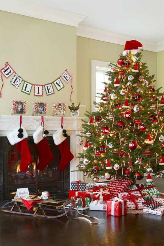 Главному волшебнику Нового года непременно понравится, если елку вы посвятите именно ему. Для этого надо придерживаться красных тонов, использовать леденцы-посохи, а вместо звезды надеть на верхушку красный колпак!