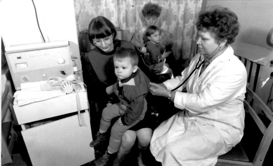 Оказание медицинской помощи детям первостроителей города было организовано в 1938 году. Приказом № 4 от 09.01.1938 года назначается первый в городе врач-педиатр для ведения амбулаторного приема детей – Серова Екатерина Алексеевна.