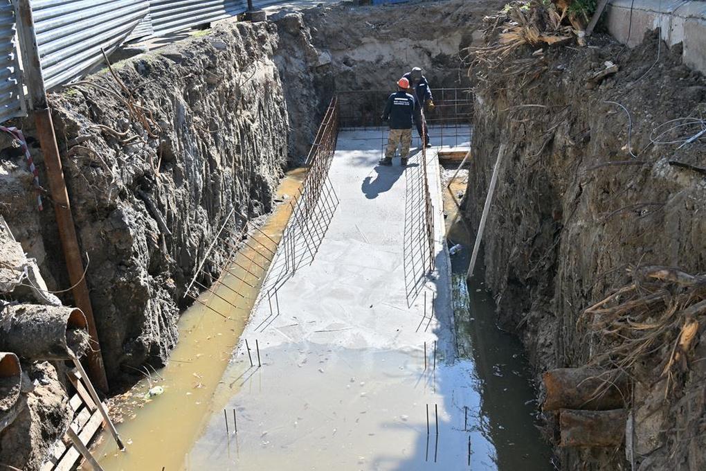 Рабочие уже заменили одну камеру, от которой проведут монолитные лотки. Это необходимо, чтобы исключить просадку грунта во время утечки. Завершить работы намерены в октябре.