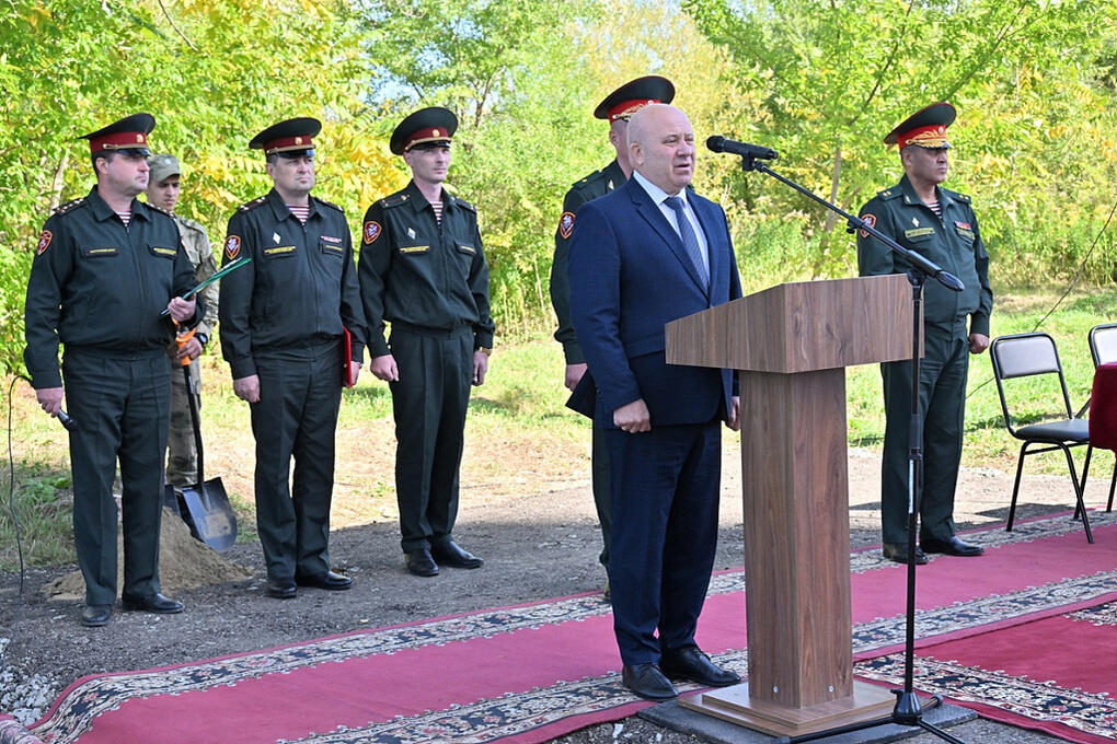 К церемонии закладки капсулы присоединился градоначальник Сергей Кравчук, врио командующего Восточным округом войск национальной гвардии РФ Курбонали Сафаров, военнослужащие и жители микрорайона.