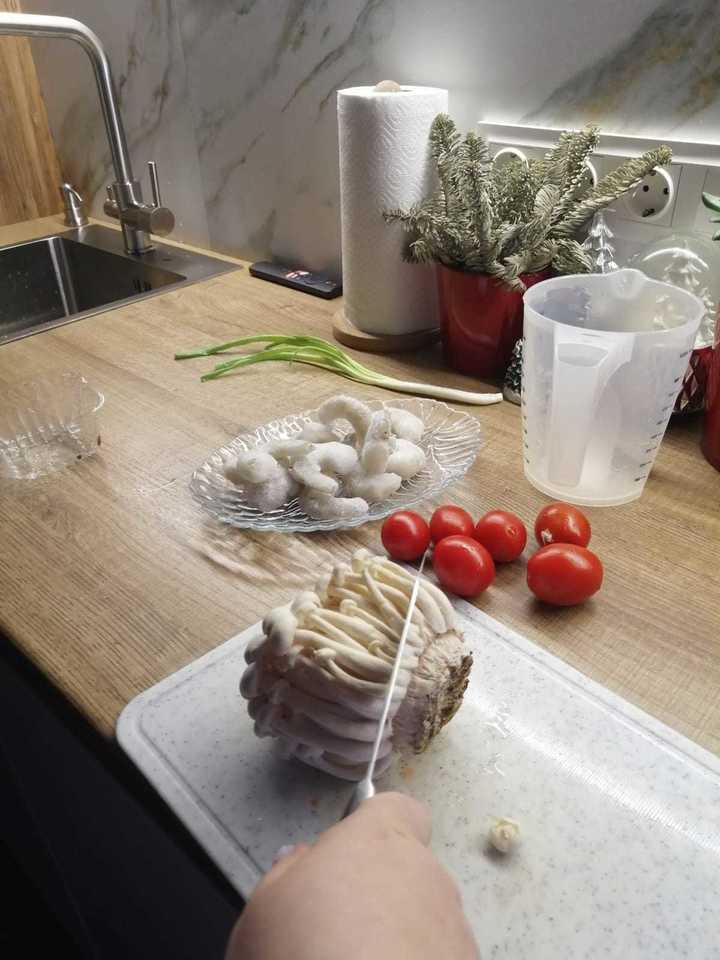 Грибы шимиджи одним срезом отделяем от корня
