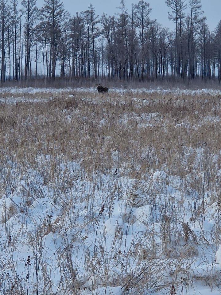 Уникальный кадр удалось запечатлеть охотоведу из Ташкинского заказника в Амурской области. Во время зимних учетов мужчине повстречался лось. Большой, статный, красивый и, судя по стоячим ушкам, в хорошем настроении.