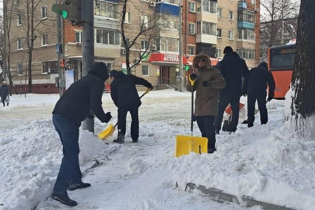 Сегодня, по поручению мэра города, сотрудники администрации и подведомственных структур примут участие в расчистке снега. Сотрудники управлений и комитетов районов уберут тротуары и подходы к пешеходным переходам, сообщает администрация города.