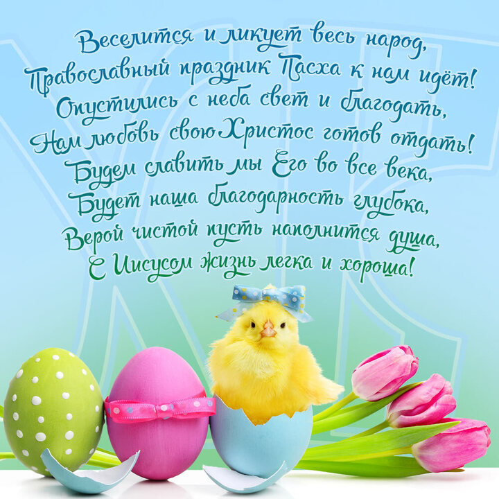 Выберите понравившуюся вам яркую открытку или трогательное изображение на Пасху, скачайте поздравление с Пасхой 2025 года абсолютно бесплатно и отправьте ее через социальные сети или WhatsApp. Поделитесь открыткой с родными, близкими, друзьями и коллегами, добавив к ней искренние поздравления с праздником Пасхи.