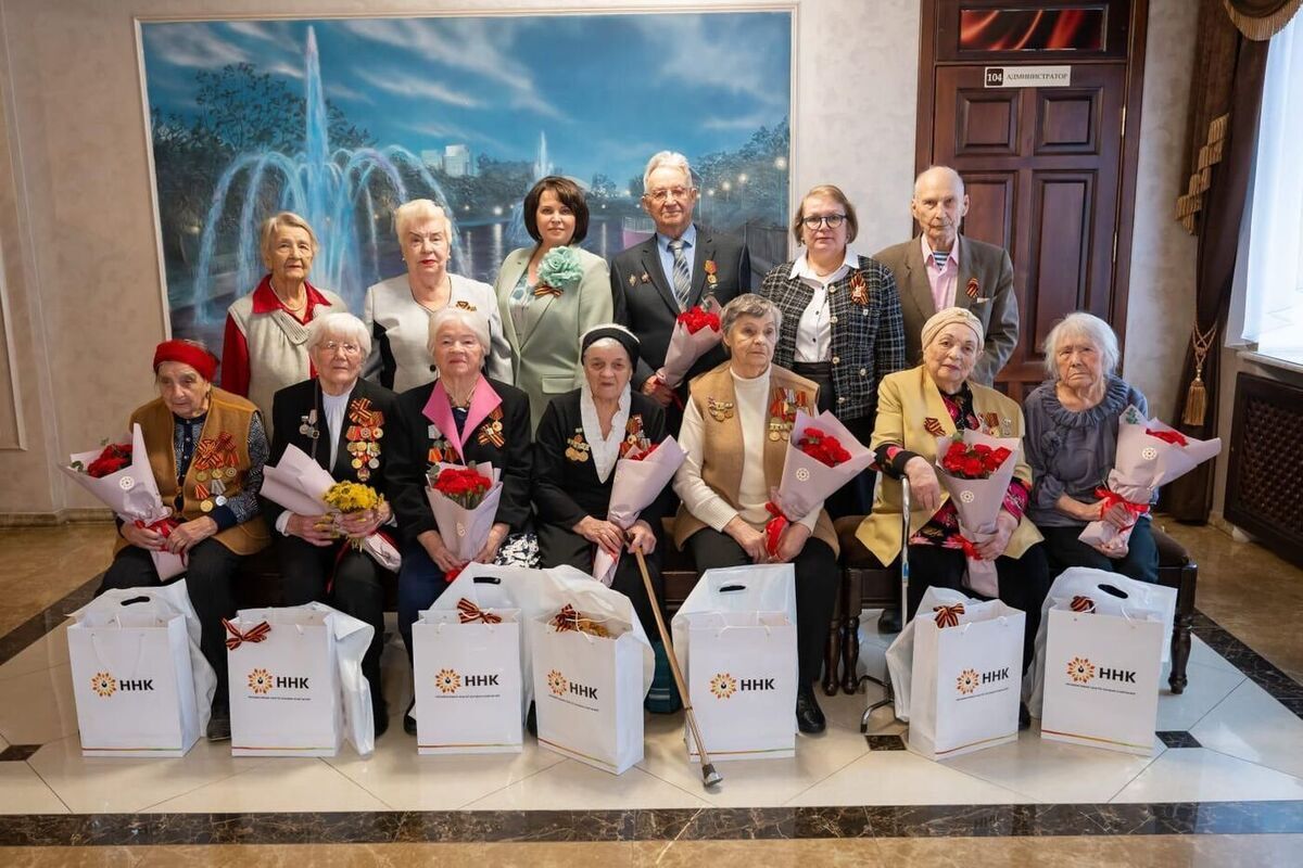 Сотрудники поздравили ветеранов, вручили им памятные подарки, а также букеты из красных гвоздик – символа Великой Победы.