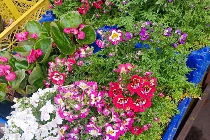 На рынке в районе «Химфармзавода» идет торговля саженцами, рассадой овощных культур и цветами. Торговые ряды пестреют красками и зеленью всех оттенков. Покупателям здесь готовы предложить самые разные виды растений для газонов: почвокровники, очитки, цветы всех видов. Дачникам здесь готовы предложить не только рассаду помидоров, огурцов и кабачков, но и саженцы ягодных и плодоносящих растений. При этом, несмотря на обилие товара, пара торговых павильонов остается пустой.