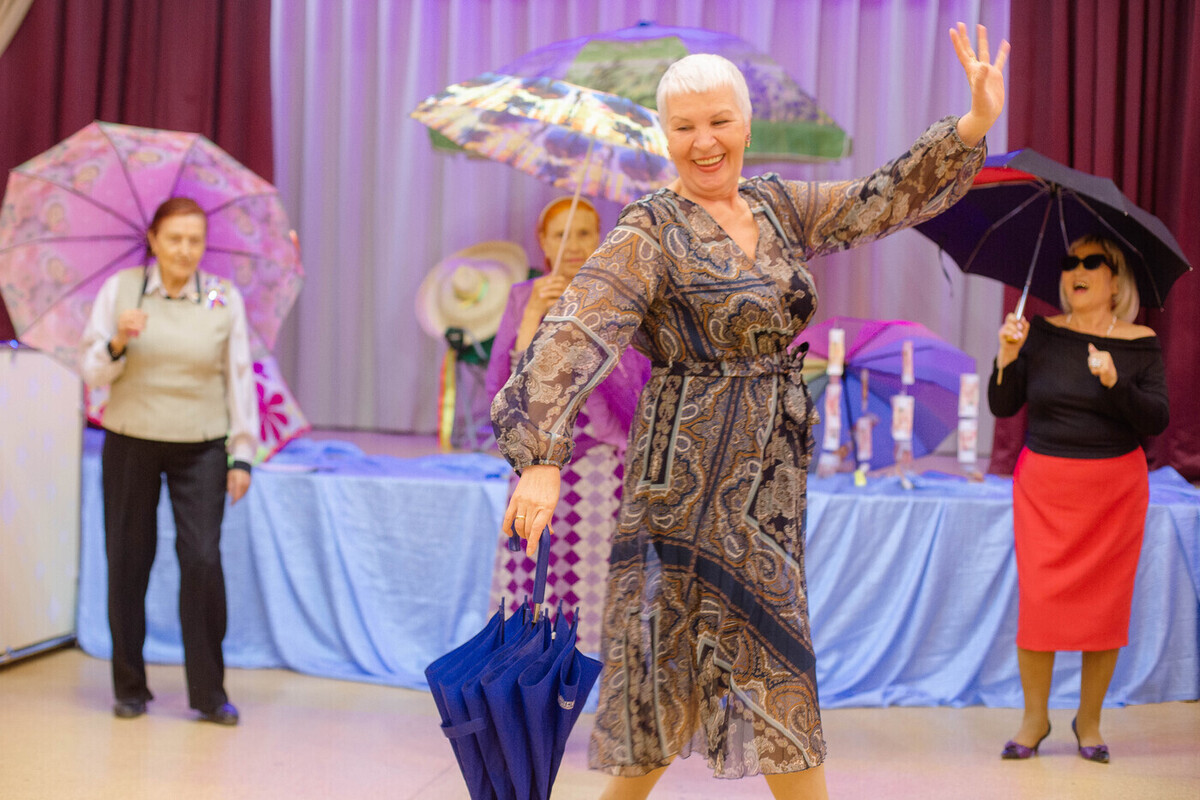 Прежде чем приступить к конкурсам, ведущий зовет размять косточки на танцполе. Музыку подобрали в тему вечеринки, и не проходит минуты, как пенсионерки уже двигаются так, будто выпили эликсир молодости. Звучит одна песня, потом другая, и ведущий снова обращается к собравшимся гостям.