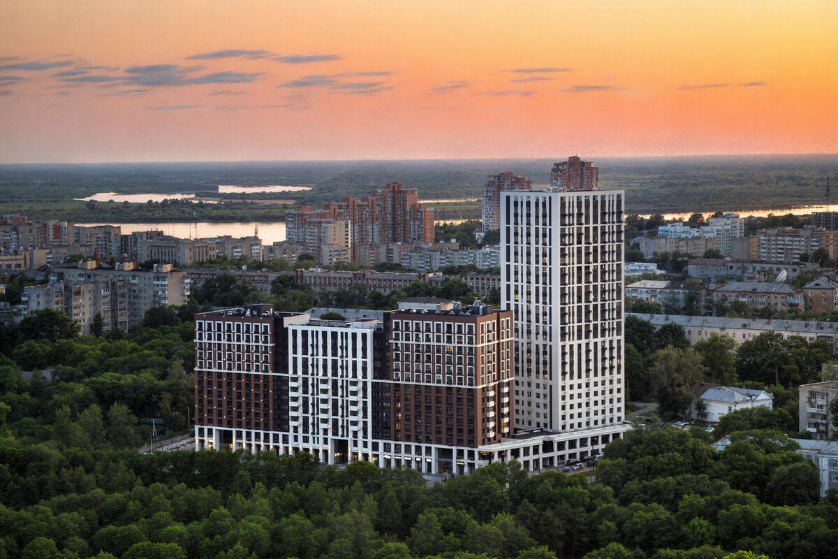 Пока еще есть возможность поселиться в историческом центра города. Комплекс расположился на пересечении улицы Джамбула и Амурского бульвара. Фасады с красным кирпичом и четкими линиями отсылают к традициям города, а переменная этажность добавляет силуэту легкости.