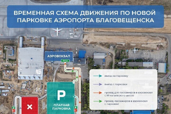 В столичном аэропорту Амурской области заработает новая парковка, где раньше была привокзальная площадь. В день открытия, 23 июня, на реконструкцию сдадут старый паркинг и изменят схему для въезда, сообщает пресс-служба администрации.