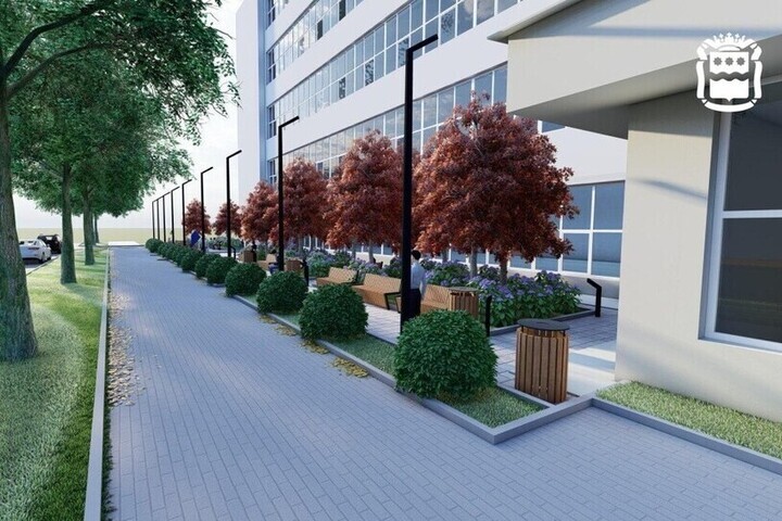 Дополнительно место озеленят. Здесь появятся 11 кленов, декоративные кустарники и газон. Установят также урны, скамейки и уличное освещение.