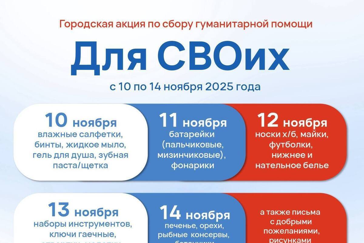 Хабаровчан приглашают на акцию гуманитарной помощи «Для СВОих», в рамках которой собирают необходимые вещи для военных, защищающих Родину на фронте. Передать участником СВО можно будет и мелкие пожертвования: рисунки, открытки, письма и другое. Об этом пишет пресс-служба городской администрации.