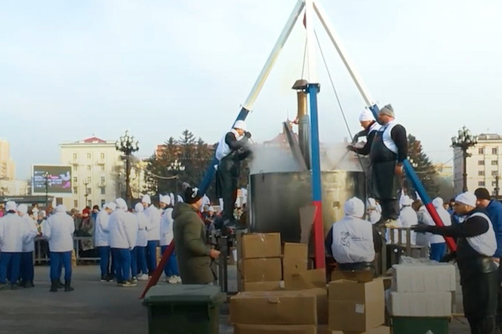 Кроме ухи, гостей угощали солдатской кашей и свежей выпечкой. Праздничное настроение поддержали выступления ансамбля русской песни «Бабкины внуки» и лучших творческих коллективов Хабаровского края.