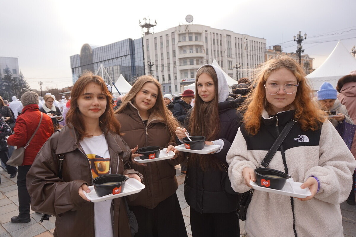 На площади было создано 15 станций, подход к которым координировали волонтеры. За два часа раздали более 13 тысяч порций наваристого рыбного супа. К сожалению, побить рекорд 2017 года, когда на ярмарке было сварено свыше 15 тысяч порций ухи и Хабаровск вошел в Книгу рекордов России, не удалось.