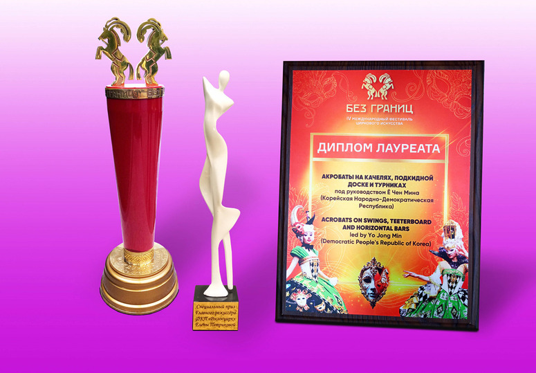 На IV Международном фестивале циркового искусства «Без границ», проходившем в сентябре этого года в России, цирковые артисты Кореи выступили в номере «Акробатика на качелях, подкидной доске и турниках» и безупречно выполнили трудные трюки, в том числе пять оборотов на воздухе вперед, и тем самым получили наивысший приз фестиваля – Гран-при.