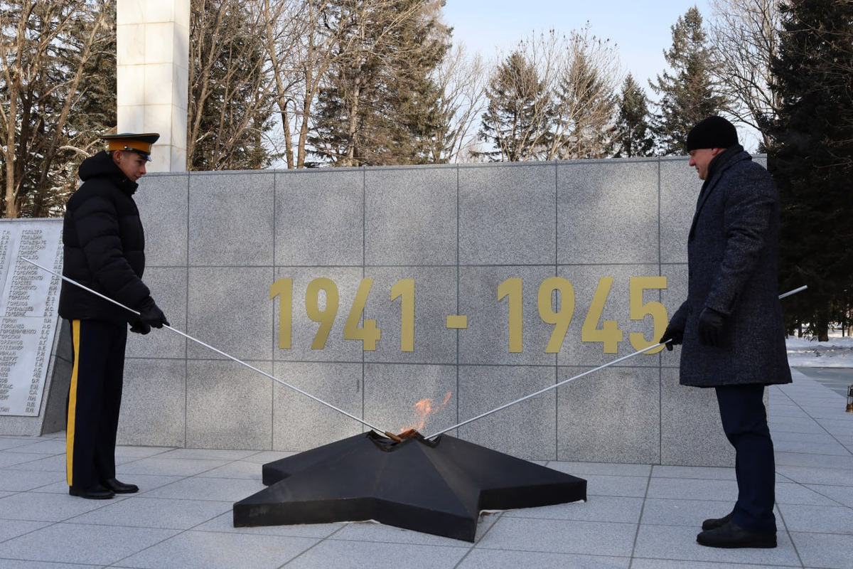 Огонь, который на время работ хранился в Ассоциации ветеранов СВО, был возвращен на мемориал. Представители городской думы, администрации и жители столицы ЕАО возложили цветы к памятнику и почтили погибших воинов минутой молчания.