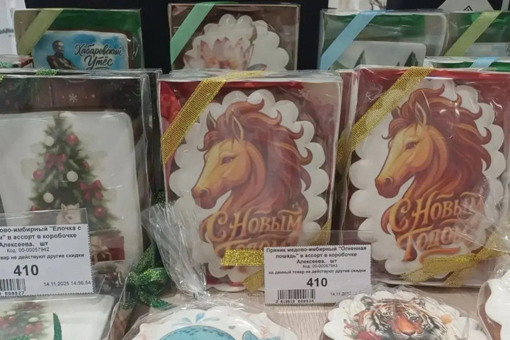 В преддверии Нового года бренд «Сделано в Хабаровского края» заполнил полки фирменного магазина праздничной продукцией. Сувениры и подарки украшены символом наступающего года – огненной лощадью. Об этом пишет пресс-служба правительства.