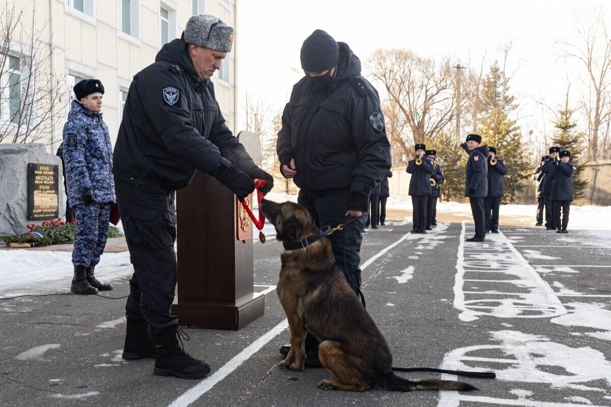 Сотрудники ОМОН "Тигр" Управления Росгвардии по Хабаровскому краю торжественно провожали на заслуженный отдых своего боевого товарища — бельгийскую овчарку по кличке Жек. Псу также была вручена награда за безупречную службу, сообщает пресс-служба ведомства.