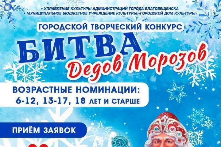 В Благовещенске стартует конкурс «Битва Дедов Морозов», в котором выберут лучшего новогоднего аниматора. Соревнование пройдет при поддержке администрации и Дома культуры – пишет пресс-служба мэрии.