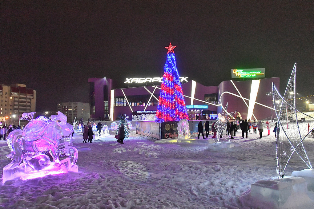 В Краснофлотском районе украсили главный новогодний городок Хабаровска, преобразовав его в пространство, объединившее творчество и спорт. Украшения и оборудование площадки, размещенной у кинотеатра «Хабаровск», высоко оценил мэр Сергей Кравчук – пишет пресс-служба администрации.